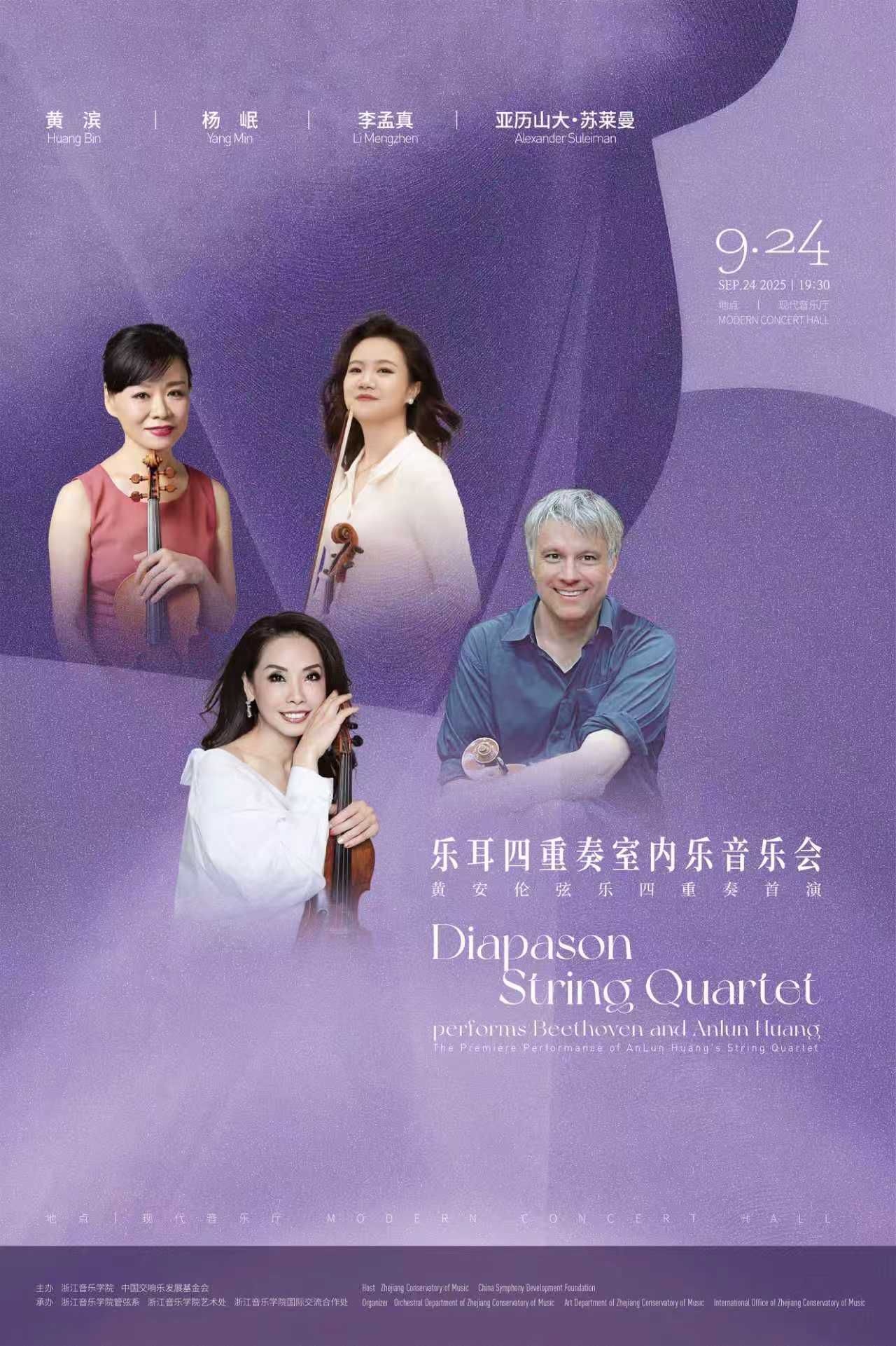 An-lun Huang, String Quartet (premiere with live broadcast), Beethoven, String Quartet Opus 132 with the Diapason String Quartet in the Beijing Concert Hall on November 4th.